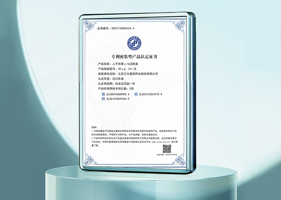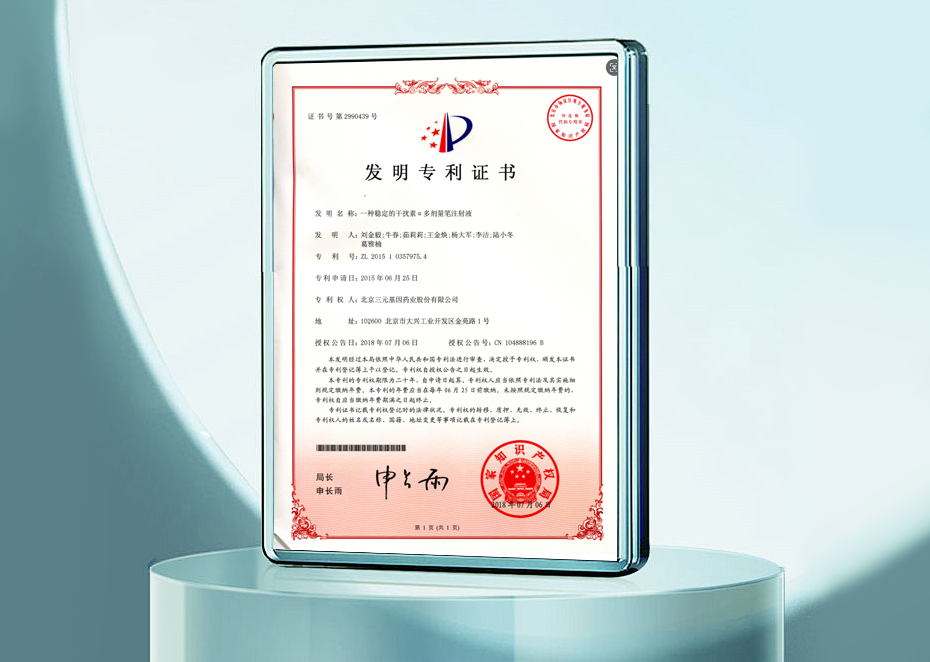 發(fā)明專利證書-一種穩(wěn)定的干擾素α多劑量筆注射液