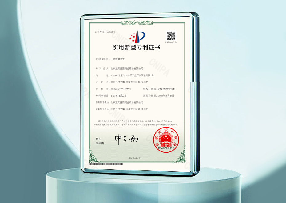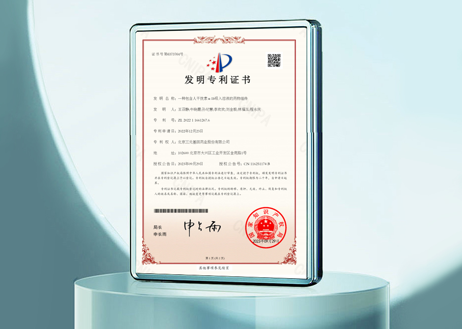 發(fā)明專利證書-一種包含人干擾素 α 1b吸入溶液的藥物組件