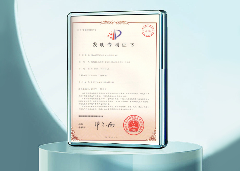 發(fā)明專利證書-蛋白質(zhì)層析純化填料的清潔方法