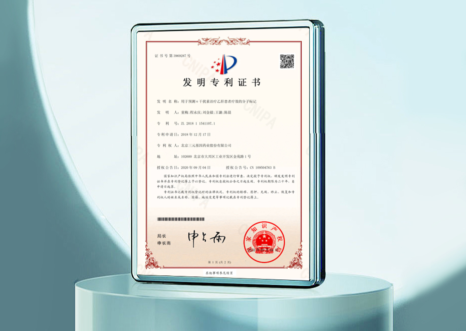 發(fā)明專利證書-用于預(yù)測(cè)α干擾素治療乙肝患者療效的分子標(biāo)記