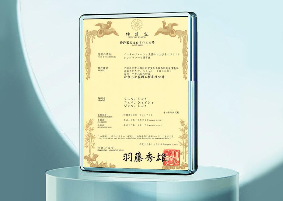 發(fā)明專利證書-一種聚乙二醇化干擾素穩(wěn)定的水溶液