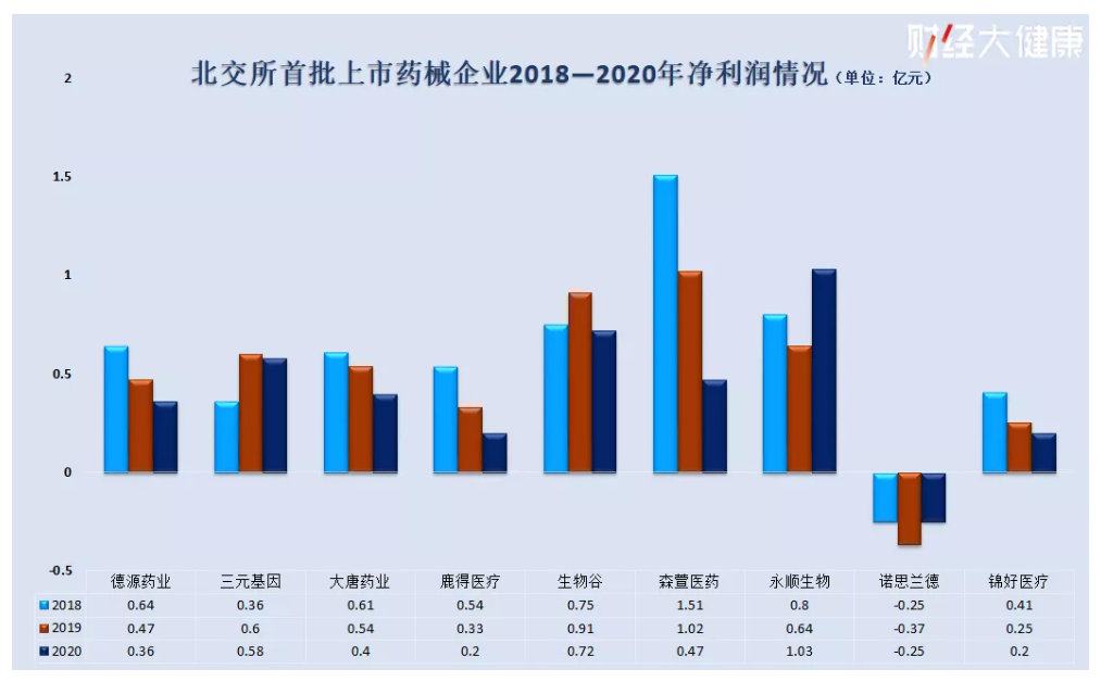 從北交所首批上市的這幾家藥械企業(yè)來看,年收入最大的不過5億元左右,最低的還不足1億元,凈利潤過億的只有森萱醫(yī)藥一家。