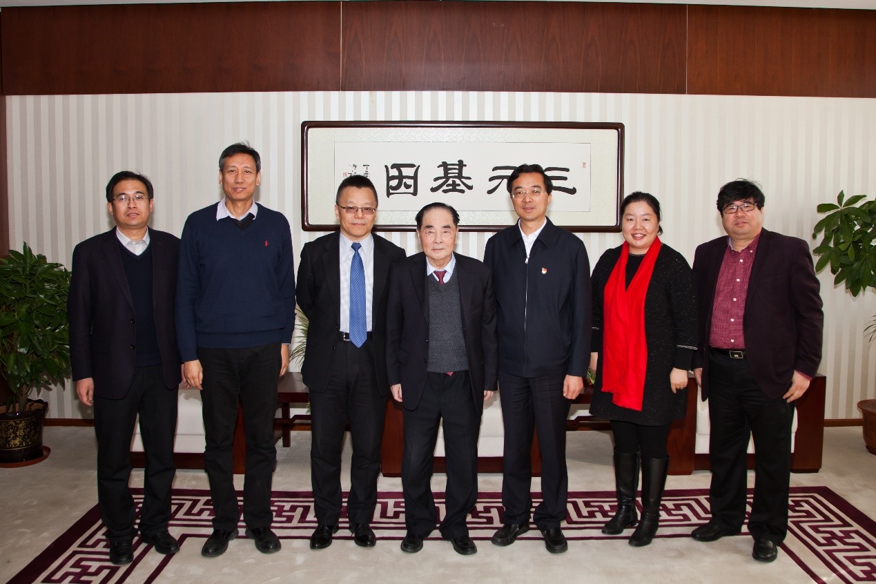 2018年2月12日,北京市大興區(qū)區(qū)委副書記、區(qū)長、開發(fā)區(qū)工委副書記王有國一行蒞臨三元基因,親切會見和慰問了三元基因創(chuàng)始人、首任董事長侯云德院士,熱烈祝賀他榮獲2017年度國家最高科學技術獎;認真聽取了董事長兼總經理程永慶關于三元基因發(fā)展規(guī)劃的匯報,并指示有關部門全力支持并高效落實;同時代表區(qū)委、區(qū)政府向三元基因全體員工提前送來了新春祝福。陪同的領導有大興區(qū)副區(qū)長楊蓓蓓,大興區(qū)科委主任蘇榮、大興生物醫(yī)藥產業(yè)基地主任田德祥、大興新媒體產業(yè)基地主任宋強等。