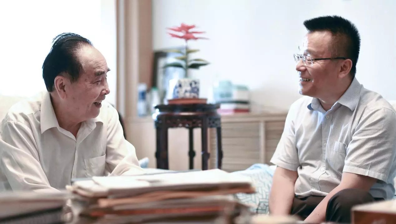 資料圖:侯云德與三元基因藥業股份有限公司總經理程永慶交流