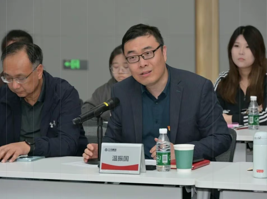 在實踐教學的研討交流環(huán)節(jié),三元基因董事長程永慶介紹了企業(yè)作為生物醫(yī)藥領(lǐng)軍企業(yè)的發(fā)展歷程和企業(yè)文化。我校制藥工程系主任溫振國教授介紹了我校制藥工程系與三元基因在產(chǎn)學研合作、支部共建等方面的情況。
