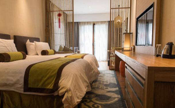 3、客房??头恐凶铌P(guān)頭的無(wú)疑是一張和緩舒適的大床了??头恐械乃械脑O(shè)計(jì)都要圍繞床來(lái)睜開。以床為核心設(shè)置設(shè)備放置床頭燈和簡(jiǎn)略的桌椅。一個(gè)開閉柔柔空間夠大的衣柜可以放置參觀者的全數(shù)行李,也能儉仆室內(nèi)空間。